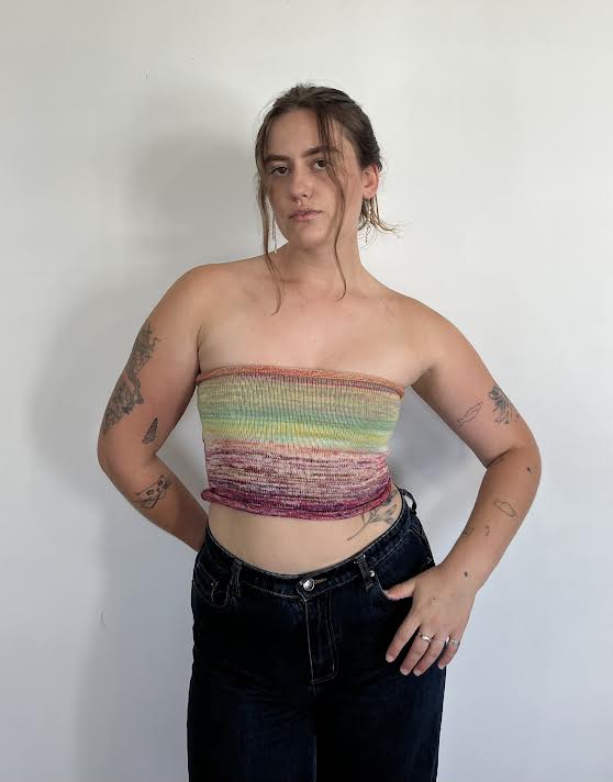 I am pictured wearing the boob tube as a size 12.