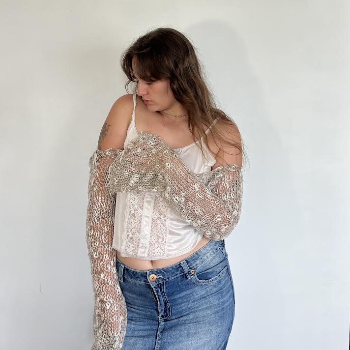 Please note - these garments are made using hand spun French wool so there are still bits of dried grass within the piece.